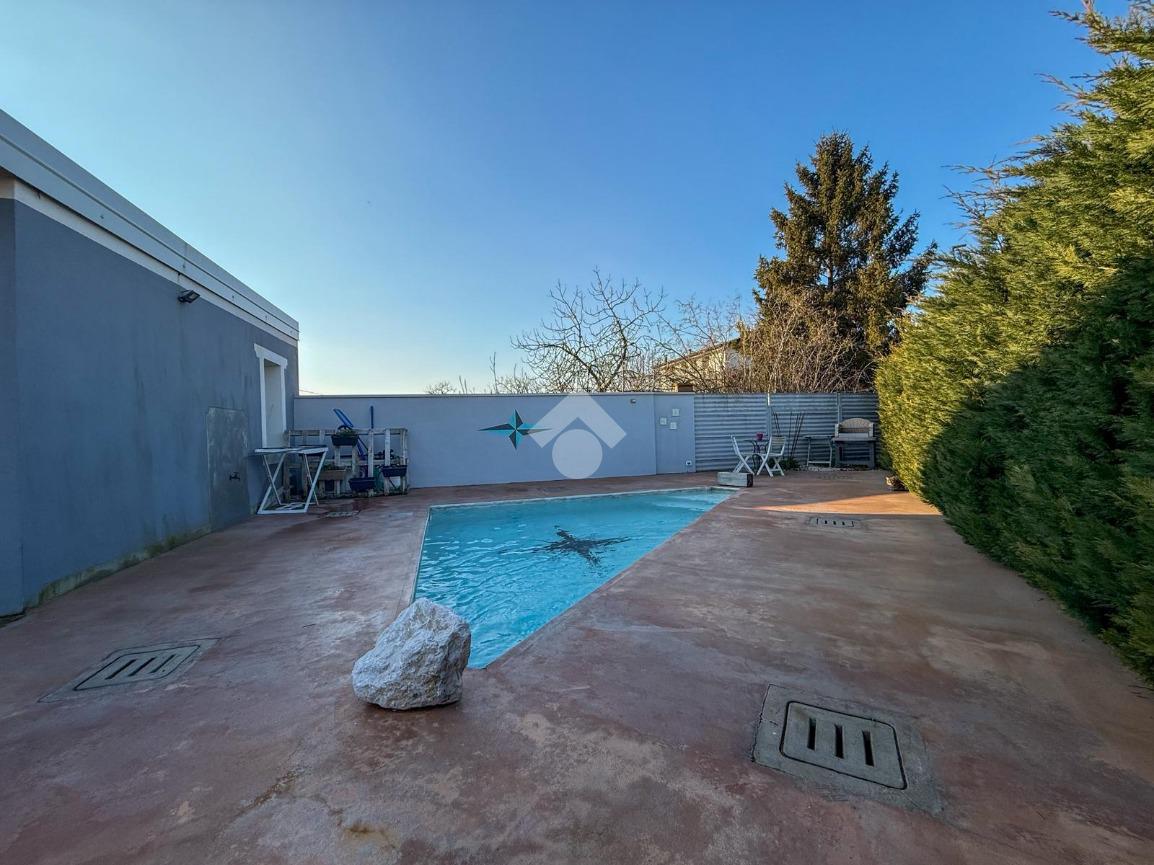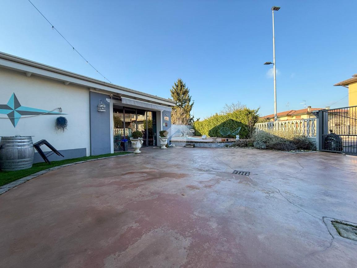 PARTICOLARITA E DESCRIZIONE All'ingresso del paese di Manerbio, proponiamo una casa indipendente di recente ristrutturazione, risalente al 2020. Questa abitazione si compone di due unità immobiliari, un pratico monolocale al piano terra di circa 43 mq, ed un trilocale al piano primo. L'appartamento trilocale è caratterizzato dalle imponenti altezze con travi in legno a vista che aiutano a rendere accogliente l'ambiente, è dotato di doppi servizi e offre la possibilità di ricavare un soppalco nell'attuale sottotetto, da sfruttare come zona relax. La casa è dotata di pannelli fotovoltaici da 8.7 kW e batterie di accumulo da 9 kW, assicurando efficienza energetica e comfort abitativo, abbattendo i costi di gestione. All'esterno, una corte privata di circa 180 mq con piscina offre uno spazio ideale per momenti di relax all'aperto. Possibilità di realizzare autorimessa dove ora si trova la reception, aumentando la funzionalità complessiva della proprietà. Possibilità di acquisto dell'immobile arredato .