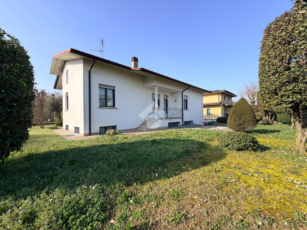 PARTICOLARITA' E DESCRIZIONE A Manerbio, proponiamo in vendita una villa singola edificata su un lotto di 620 mq, ideale per chi cerca spazi ampi e ben distribuiti. Costruita nel 1997, questa residenza signorile si sviluppa su unico piano ed è arricchita da un'ampia taverna, offrendo una disposizione interna che garantisce comfort e funzionalità. L'ingresso accoglie in un ampio soggiorno, perfetto per momenti di relax e convivialità, la cucina abitabile, luminosa e spaziosa, consente un comodo accesso sullo spazio esterno, sfruttabile nella bella stagione per pranzi e cene all'aperto. La zona notte comprende un bagno finestrato con vasca, un'ampia camera matrimoniale, una seconda camera (entrambe con parquet) e una terza stanza ad oggi trasformata in locale lavanderia. Completano la proprietà un giardino privato di 460 mq, ideale per chi ama gli spazi verdi, un'ampia taverna e un secondo bagno/lavanderia; sempre nell'interrato troviamo un comodo box auto doppio in larghezza. L'immobile si trova in una via privata, protetta da sbarra, a cui hanno accesso solo i residenti. Si precisa che i glii attuali serramenti in alluminio, sono stati rinnovati qualche anno fa. Possibilità di vendita immobile arredato.